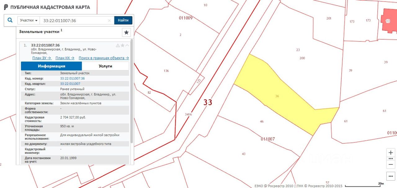 Кадастровый номер 33:22:011007:36