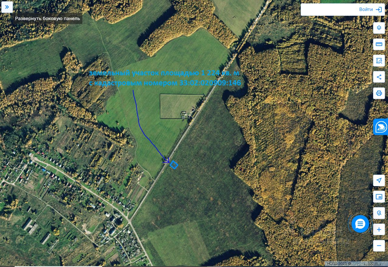 земельный участок площадью 1 224 кв. м, Уточнённая площадь, погрешность 24.0, предоставленный для дачного строительства (вид разрешенного использования), с кадастровым номером 33:02:020909:146, находящийся на землях сельскохозяйственного назначения (категория земель), по адресу: Местоположение установлено относительно ориентира, расположенного за пределами участка. Ориентир жилой дом. Почтовый адрес ориентира: Владимирская обл, район Киржачский, МО Кипревское (сельское поселение), д Афанасово, ул Центральная, д 19