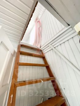 Кухня с лестницей на мансардный этаж и комната;