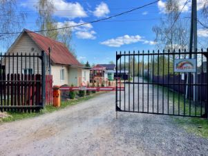 Участок огорожен забором из сетки рабица с распашными воротами и калиткой.