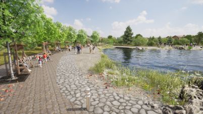 благоустроенные прогулочные зоны и зоны отдыха у озера только для жителей поселка