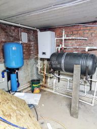 Первый этаж готов к проживанию, второй требует небольшой отделки, есть материал для лестницы. Большой цокольный этаж для хозяйственных нужд. В дом проведены все необходимые коммуникации: электричество, водоснабжение из скважины, газ и канализация. Два отопительных котла - газовый и электрический.
