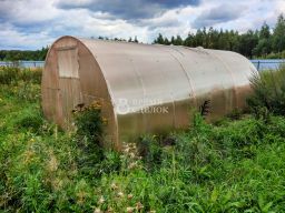 Широкий большой участок огорожен забором со всех сторон. Есть капитальный хозблок.