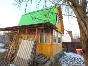 Двухэтажный дом размером 4x6 м., каркасный, на столбчатом фундаменте. С внешней стороны стены обшиты вагонкой и покрашены, внутри отделаны вагонкой и покрыты лаком . Полы шпунтованная доска толщиной 35 мм. Кровля - профнастил. Окна деревянные. Входная дверь деревянная. Сделана отмостка. Дом зарегистрирован как садовый.