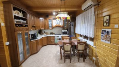 Двухэтажный дом в охраняемом ДНТ с круглогодичным асфальтированным подъездом, с 4 спальнями, вторым светом, камином, баней, барбекюшница с финским грилем, погреб, стеклянная(!) теплица, гаражи теплый и холодный, навес для стоянки двух автомобилей.