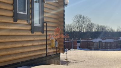 Дом возведен из оцилиндрованного бревна 22 диаметра на монолитном армированном фундаменте с перекрытием первого этажа железобетонной плитой. Ростверг под столбы террасы. Домокомплект, использующийся в строительстве, заводского производства, с нумерацией уже подготовленных на заводе бревен, благодаря чему достигается точное примыкание всех узлов. Окна - Рехау, двухкамерные (3 стекла). Кровля - металлочерепица с шумоизоляцией. В доме установлены межкомнатные двери, подобранные по цвету к напольному покрытию (керамогранит и ламинат). В санузле 1 этажа завершаются работы по оборудованию душевой кабины, будет установлена раковина и унитаз. Санузел второго этажа уже укомплектован.