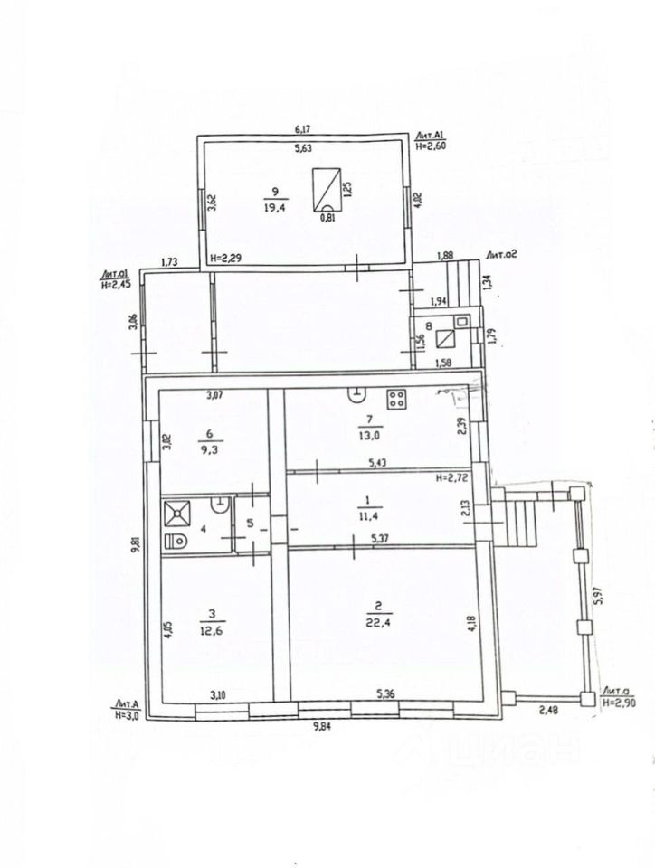 Кухня - 13 кв.м (есть погреб для хранения заготовок) , гостиная - 22,5 кв.м, две жилые комнаты - 12,6 и 10 кв.м, санузел с душевой кабиной.