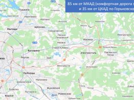 85 км от МКАД (комфортная дорога за менее 1 часа) и 35 км от ЦКАД по Горьковскому шоссе. 5 км до г. Покров и 90 км до г. Владимира. 3 минуты до федеральной трассы М-7 "Волга" и автобусной остановки (рейсы в Москву и Владимир).