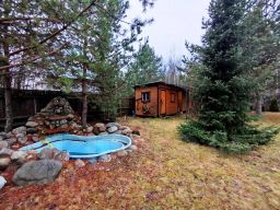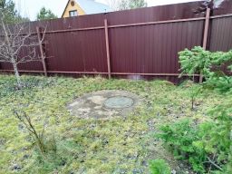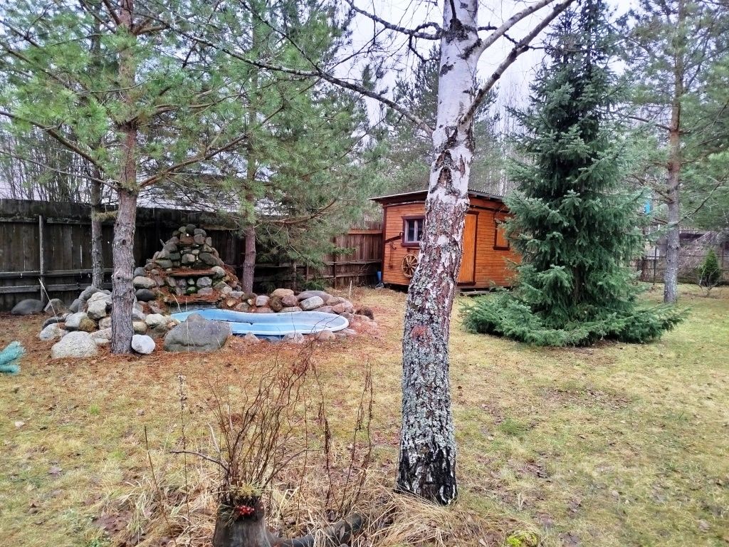 На участке 10 соток газонная трава и ландшафтный дизайн. Большое количество хвойных деревьев и пруд с водопадом - очень живописно! В лесу много ягод и грибов. Участок освещен и находится под видеонаблюдением. Круглогодичная и круглосуточная охрана. В зимнее время дороги чистятся регулярно. Имеется стоянка для двух автомобилей, два сарая, курятник и летний туалет. Один взрослый собственник. В собственности более 5 лет.
