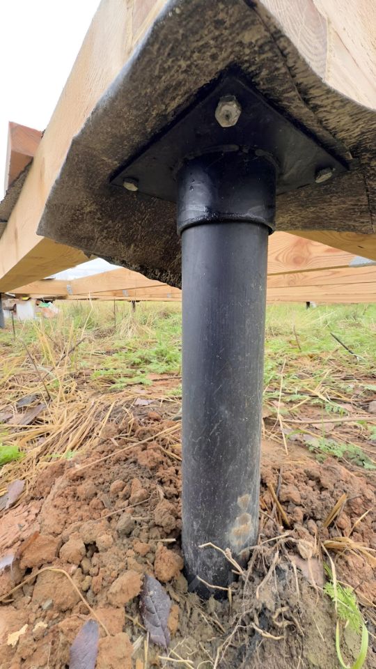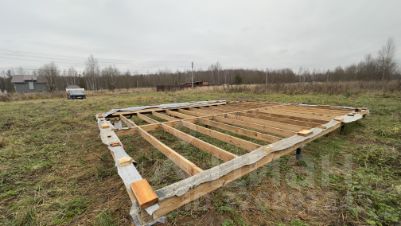 Подготовлен фундамент под дом 96 м: обвязка брусом 150150 и 12 свай 762000. Участок полностью покошен.