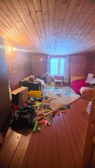 На первом этаже дома, кухонная зона и большая комната-гостинная. На втором этаже две комнаты, одна просторная-детская и небольшая уютная комната для отдыха. Имеется чердачнное помещение для хранения вещей.