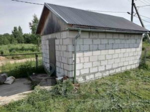 Гараж кирпичный с железными воротами с двух сторон при входе на участок к дому.