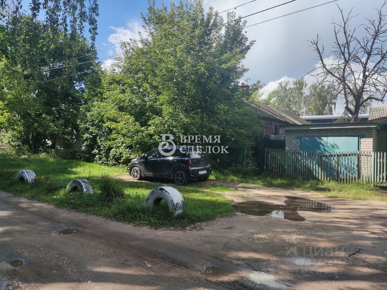 На участке старый дом под снос или реконструкцию. Есть большой высокий капитальный кирпичный гараж. входит Газель.