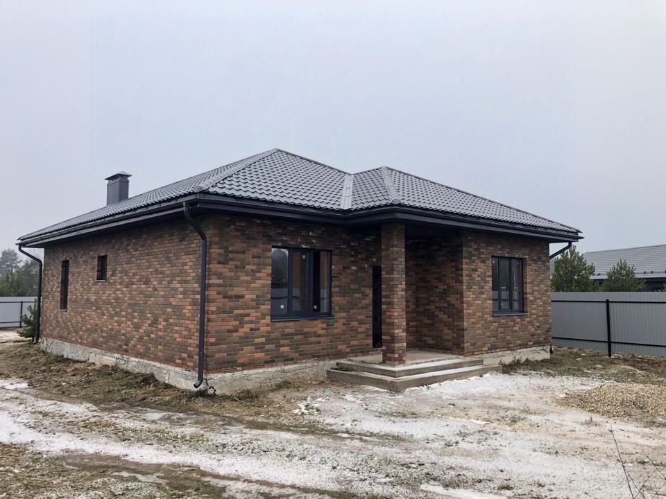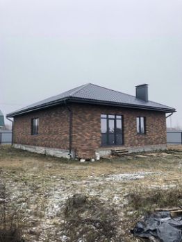 Дом 1-этажный. Выстроен из блоков, обложен кирпичом.