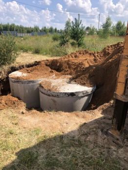Переливной септик две ямы, каждая из трёх колец.