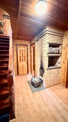 Дом утеплен со всех сторон, а потолок и крыша(металлочерепица) также обеспечивают отличную теплоизоляцию. Полы так же утепленные, что гарантирует комфорт в любое время года. внутренняя отделка- вагонка,полы-ламинат.
