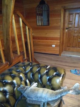 Окна: Премиальные, ламинированные золотой дуб, с декоративными раскладками (теремковые). Внешняя отделка: Дерево. Архангельская (северной) сосны. Внутренняя: ангарская сосна и лиственница. Пол — толстая массивная доска (прим.: общая конструкция пола), финишное покрытие — испанский керамогранит и немецкий ламинат.