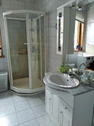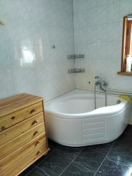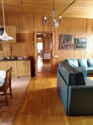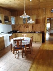 На участке расположен бревенчатый гостевой дом (1 этаж + мансарда) площадью 90 кв.м. с индивидуальным септиком, отопление электрическое + дровяная печь (можно подвести газ от основного дома).