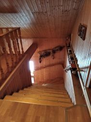 Продается 2-х этажный дом 177 кв. м. Материал - тес/брус обложен кирпичом. Год постройки 2003. Планировка: 1-й этаж — 2 совмещенных санузла, кухня/ гостиная (38 кв.м.), каминный зал/ библиотека (35 кв.м.), сауна; 2-й этаж — 3 спальни. В каминном зале высота потолка 4.2 метра. Отопление - газовый котел, вода — скважина, канализация — септик, электричество — центральное (+ запасной источник электроснабжения — дизель генератор). Система видео наблюдения за территорией. Установлена охранная сигнализация (подключена к пульту).