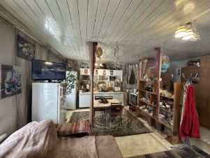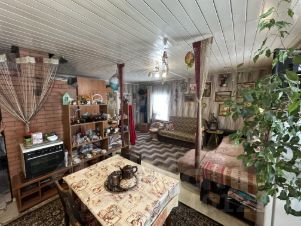 Площадь дома 98,6 кв.м. Терраса введена в жилой фонд. В доме две изолированных друг от друга комнаты. В каждую комнату изолированный вход через террасу. Первая комната студия кухня, гостиная. Вторая комната включает в себя - прихожую, маленькую комнату и большой зал, дополнительный выход на террасу. В каждой комнате своя печь.