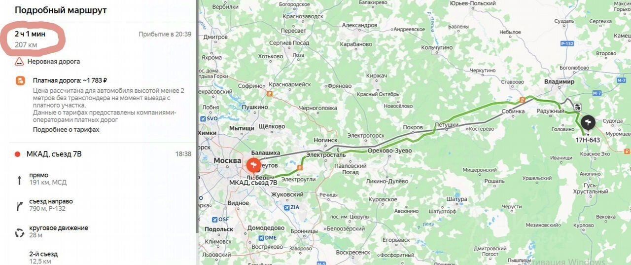-Всего 207 км от Мкад, что составляет около 2 часов езды по скоростной трассе М12 без пробок. Близость к городам Владимир и Гусь-Хрустальный.