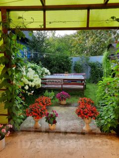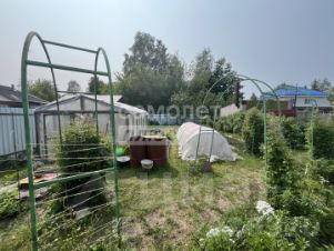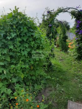 На участке много насаждений, цветов, яблони, груши, малины, грядки и т.д. Установлена теплица.