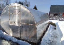 На территории имеются все необходимые постройки: навес для автомобиля, теплица, сарай, летний туалет.