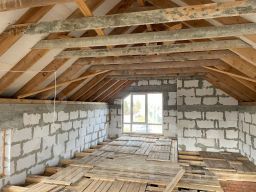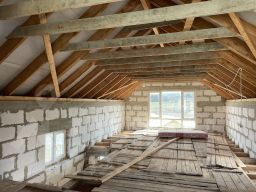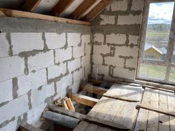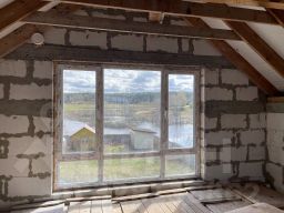 Отличная планировка: на первом этаже предусмотрена большая кухня-гостиная, и санузел, на втором этаже планировалось 2 спальни, небольшой санузел и холл с окнами. Фундамент-монолитные плиты, стены-газосиликатные блоки, перегородки кирпичные, перекрытия между подвалом и 1 этажом-железобетонные плиты, между первым и вторым этажом-деревянные. Установлены панорамные окна ПВХ, из которых открывается вид на лес и реку Ручей и Клязьму. Вода предусмотрена из колодца, установлена система подачи воды с помощью насосной станции, установленной в подвале. Канализация-септик. Разведены водопроводные трубы и канализационные. В 2023 года в село подвели газ, он проходит по границе участка. Участок крайний в селе около церкви, соседи только с одной стороны. Участок сухой, огорожен забором по всему периметру. На участке есть хозблок и беседка. Имеются насаждения: яблони, груша, малина, крыжовник, вишня.