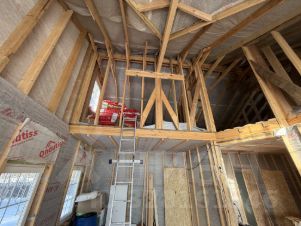 ЖИЛОЙ ДОМ: Дом без внутренней отделки, со всеми коммуникациями, каркасный, двухэтажный с мансардой, компактный, утепленный ( для круглогодичного проживания, утепление современное: стены -150 мм, пол и потолок 200 мм), размером 9 на 12 метров. Дом на свайном фундаменте, площадью 89.3 кв.м., без отделки. Первый этаж состоит из открытой террасы 14,85 кв.м., тамбура 3.95 кв.м., холла 12.3 кв.м., кухни - гостиной 27 кв.м. с выходом на вторую террасу 12. 9 кв.м., бойлерной 6.6 кв.м., туалета 2.8 кв.м., душевой -5 кв.м. (в сан.узлы все коммуникации подведены и функционируют, душевая кабинка и унитаз установлены)., две раздельные комнаты-спальни: 11.5 кв.м. и 11.8 кв.м. и кладовая 4.8 кв.м. Второй этаж: холл 14.9 кв.м., кабинет 13.85 кв.м., комната-25.2 кв.м. и гардеробная - 5.22 кв.м., Дом построен в 2024 г. Окна в каждом помещении ПВХ, двойной стеклопакет. Кровля - металлочерепица. Дом оформлен ЖИЛЫМ - прописка, приобретение с помощью средств материнского капитала. Кадастровый номер дома 33:01:000612:2326.