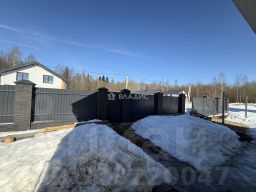 Забор с кирпичными столбами по фасаду с откатными воротами. Установлены металлические столбы по периметру всего участка.