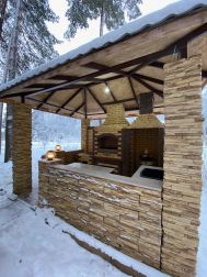 Мангал с печью под крышей, казаном и тандыром.