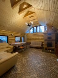 1 этаж: теплые полы, русская печь, баня на дровах, санузел с душевой кабиной, каминный зал, большой гостиная-столовая;