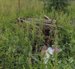 Участок имеет забор лишь с одной стороны, есть примерно 30 столбов для забора.