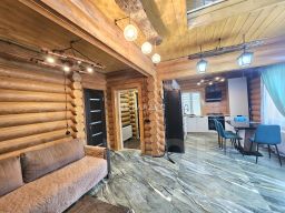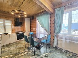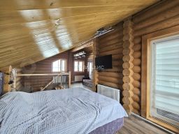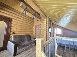 В доме на первом этаже - просторная кухня - гостинная, сан.узел с ванной, сауна-баня с дровяной печкой