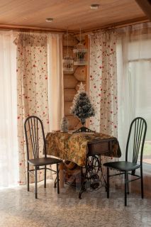 Основной двухэтажный жилой дом 205 м2. Построен из кедра, привезенного из Красноярского Края. На материалах не экономили, строили для себя, все материалы экологически чистые. Установлено дорогое импортное отопительное оборудование. Автономная канализация. Проведен тёплый водяной пол. Пять комнат + большая столовая. Два с/у. Балконы с резной ковкой. Открытая веранда для летней столовой с видом на сад. Крыша из натуральной черепицы. Все коммуникации заведены.