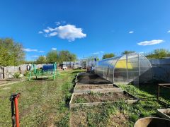 Участок площадью 10 соток — это настоящая находка для любителей природы и садоводства. На территории расположены две теплицы, где вы сможете вырастить собственные овощи и зелень, а также уютные качели для отдыха и сарай для хранения инструментов и садового инвентаря.