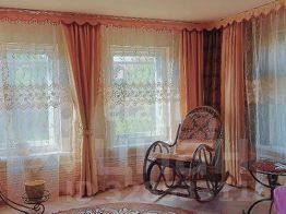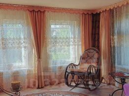 Спальня в розовом цвете, зал с кованными элементами в бежевом цвете, спальня детская в чёрном цвете, спальня ее нет на фото в зелёном цвете. сан. Узел черно-белый пластик панели, кухня в оранжевом цвете. Дом можно посмотреть по договорённости.