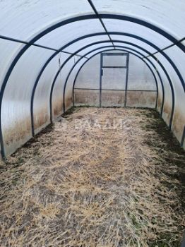 На участке две теплицы из поликарбоната, сарай, насаждения плодовых деревьев и кустарников.