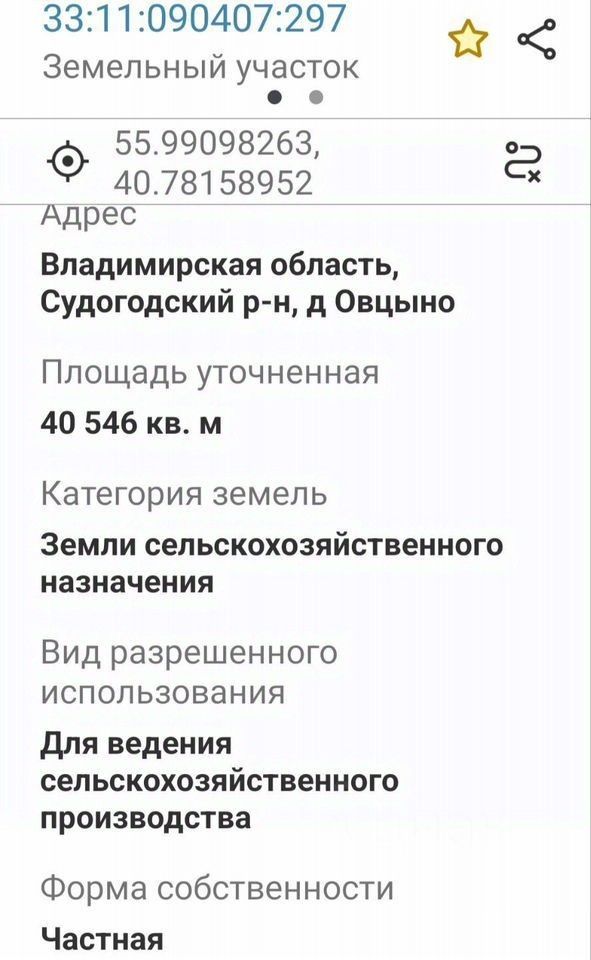 Продам свой сельскохозяйственный земельный участок с лесом рядом с рекой Сойма, кадастровый номер 33:11:090407:297, общей площадью 405 соток (40546 кв. М.) Участок находятся в 30 км от города Владимир, д. Овцыно, подъезд по грунтовке, от центральной улицы примерно 1 км. Подъезд с другой стороны тоже по грунтовой дороге от автобусной остановки на дороге Р72 примерно 2 км. Рядом две реки Войнинга и Сойма. До Москвы около 200 км. Участок в окружении леса. Электросети по границе участка, вдоль дороги. Категория земель: Земли сельскохозяйственного назначения. Ври для сельскохозяйственного производства. Фото выполнены весной 2024 года, видео вышлю по запросу. Цена за весь участок 220т. Р. Пишите. Звоните.