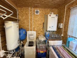 КОММУНИКАЦИИ: Электричество в дом, баню и хоз/блок заведено и разведено по помещениям. Газ (магистральный) в дом заведен (отопление дома от газового котла) - батареи разведены по всему дому. Двухконтурный газовый кател: на отопление и горячую воду. Водопровод - собственная питьевая скважина глубиной 16,5 метров, в кессоне, зимний вариант. Канализация - бетонированные кольца, в количестве 6 штук. Интернет в дом заведен.
