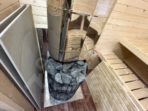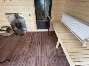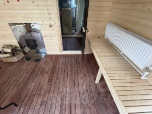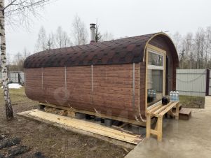 БАНЯ: Баня квадро-бочка, на монолитный фундамент (сама баня на блоках, которые стоят на монолите; сделано в целях вентиляции под баней и завода коммуникаций), размером 5 на 4 метров. Внутри окрашена специальной пропиткой. Баня состоит из комнаты отдыха, помывочной и парилки. Установлена дровяная печь. Баня отапливаемая от газового котла (отопление проведено, установлены батареи). Электричество, вода и канализация все заведено.