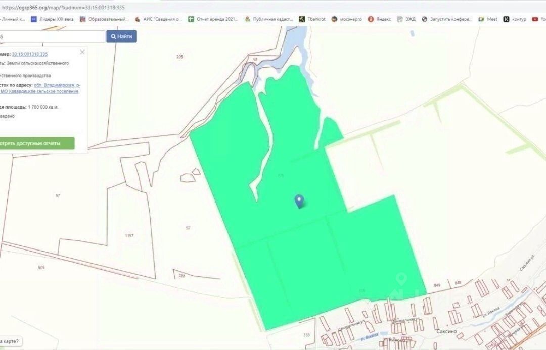 Земельный участок, категория земель: земли сельскохозяйственного назначения, разрешенное использование: для сельхоз производства, площадь 176 га кн: 33:15:001318:335.