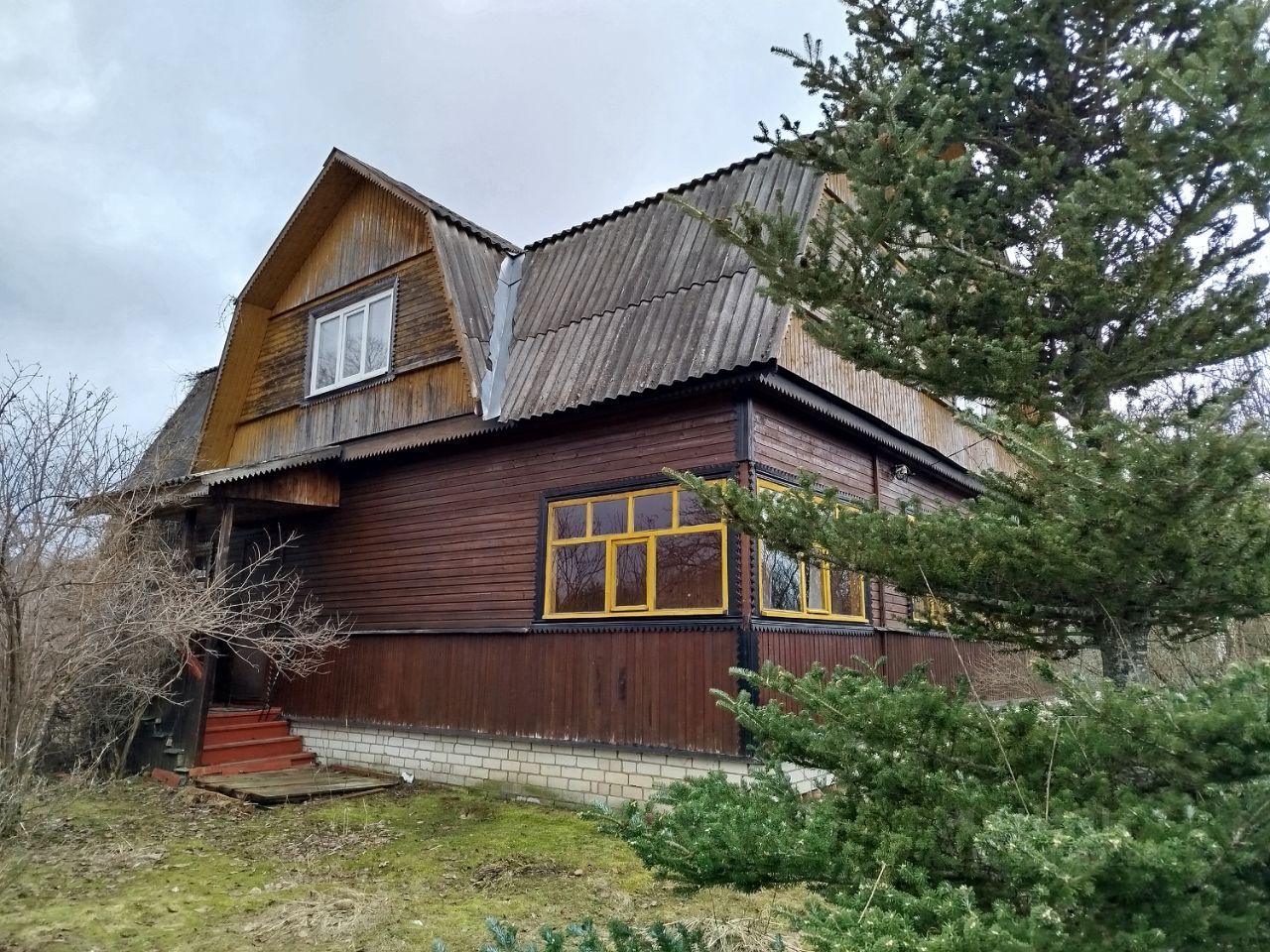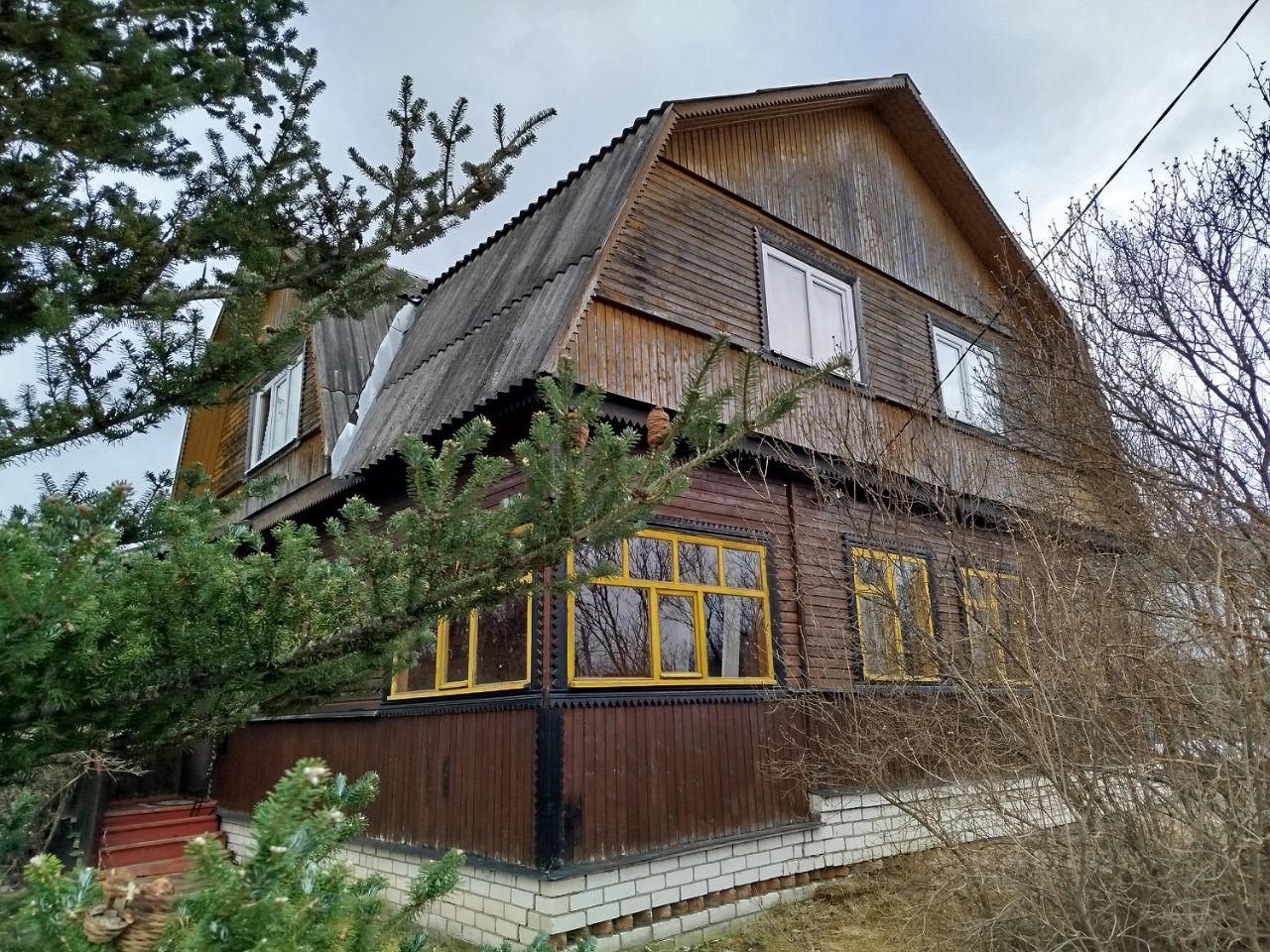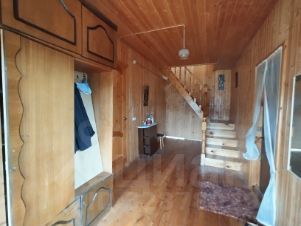 Дом теплый, светлый и сухой. Первый этаж бревно (сруб пятистенок), второй утепленный брус. Внутри дом обшит вагонкой. На первом этаже кладовка(помещение под коммуникации), кухня и большая комната. На втором четыре небольшие комнаты. Фундамент высокий ленточный, крыша шифер (не протекает).Окна на первом этаже деревянные, на втором пластик. К дому пристроена большая терраса (не утепленная). В доме электричество, биотуалет. Скважина 25м на участке. Отопление и канализация в доме не проведены. Деревня в плане на газификацию. На участке расположена бревенчатая баня с печкой, площадью 25м2 (внутри проконопаченное бревно, не обшито) и летний туалет.
