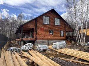 Дом возведен из оцилиндрованного бревна на монолитном армированном фундаменте с перекрытием первого этажа монолитной железобетонной плитой. Ростверг под столбы террасы. Домокомплект, использующийся в строительстве, заводского производства, с нумерацией уже подготовленных на заводе бревен, благодаря чему достигается точное примыкание всех узлов. Окна - Рехау, двухкамерные (3 стекла). Кровля - металлочерепица с шумоизоляцией. В доме установлены межкомнатные двери, подобранные по цвету к напольному покрытию (керамогранит и ламинат). В санузле 1 этажа завершаются работы по оборудованию душевой кабины, будет установлена раковина и унитаз. Санузел второго этажа уже укомплектован.