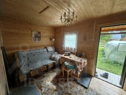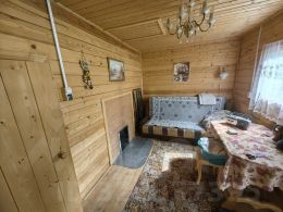 ЖИЛОЙ ДОМ, площадью 50 кв.м.: состоит из комнаты на 1 этаже 16 кв.м. (сруб), кухни 8 кв.м., прихожей 4 кв.м., холл 6 кв.м., комната на 2 этаже 16 кв.м.; к дому пристроен гараж размером 2,8х6 метров. Дом полностью меблированный. Телевидение Триколор. В доме печь, совмещённый санузел с душевой кабиной, водонагреватель, посудомоечная машина. Вода питьевая из скважины глубиной 19 метров заведена в дом и баню. На крыше металлочерепица. Окна ПВХ. На полу ламинат. В доме есть погреб.