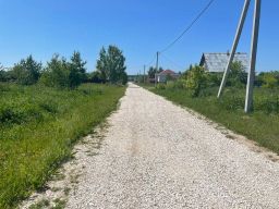Участок без строений, но все коммуникации находятся по границе участка есть электричество и водопровод. Кроме того, ведется прокладка газопровода в село.