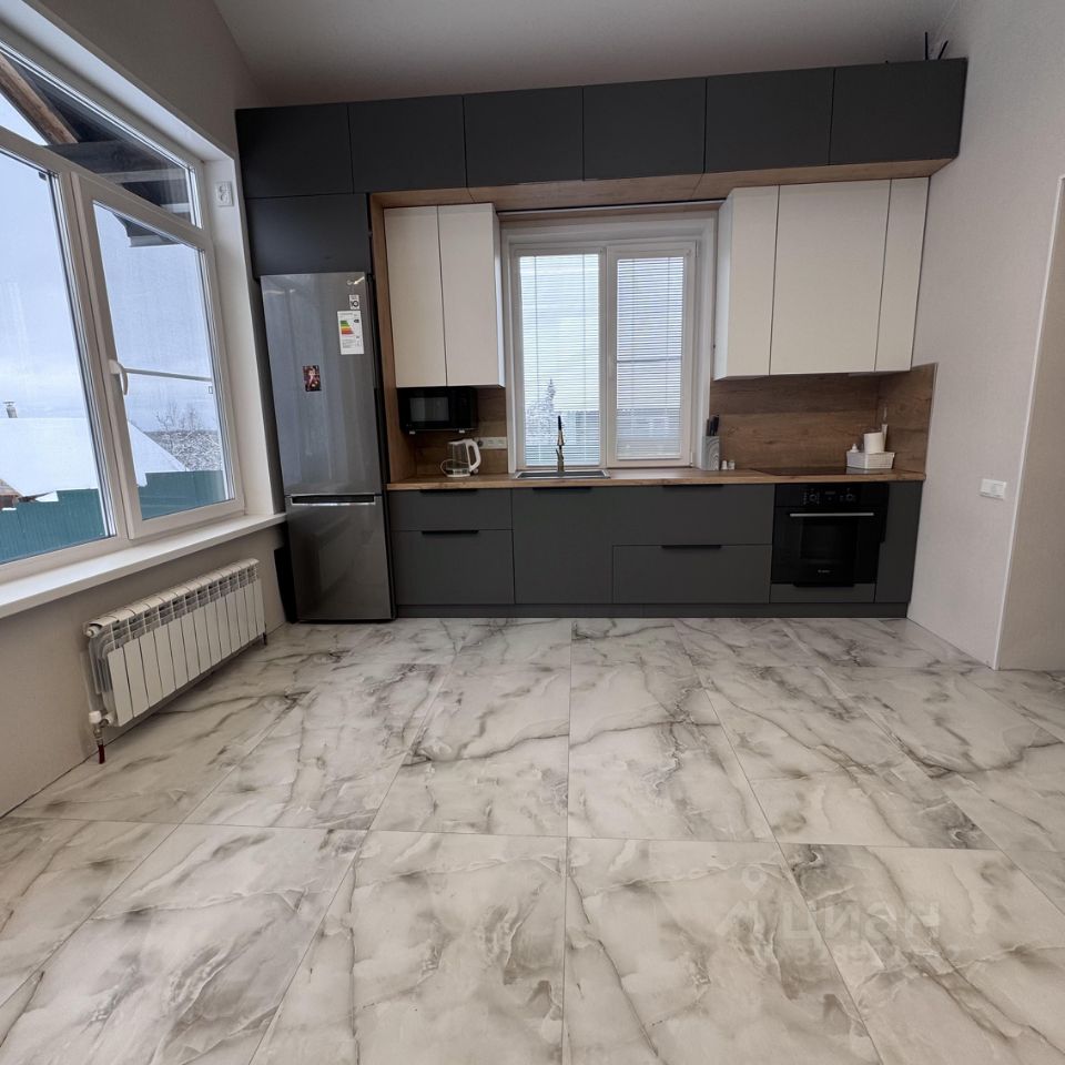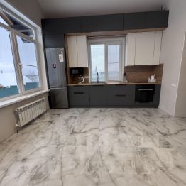 Интерьер выполнен в современном стиле качественными материалами (делали для себя-не экономили). Просторная кухня-гостиная с панорамными окнами, встроенной техникой и теплыми полами.