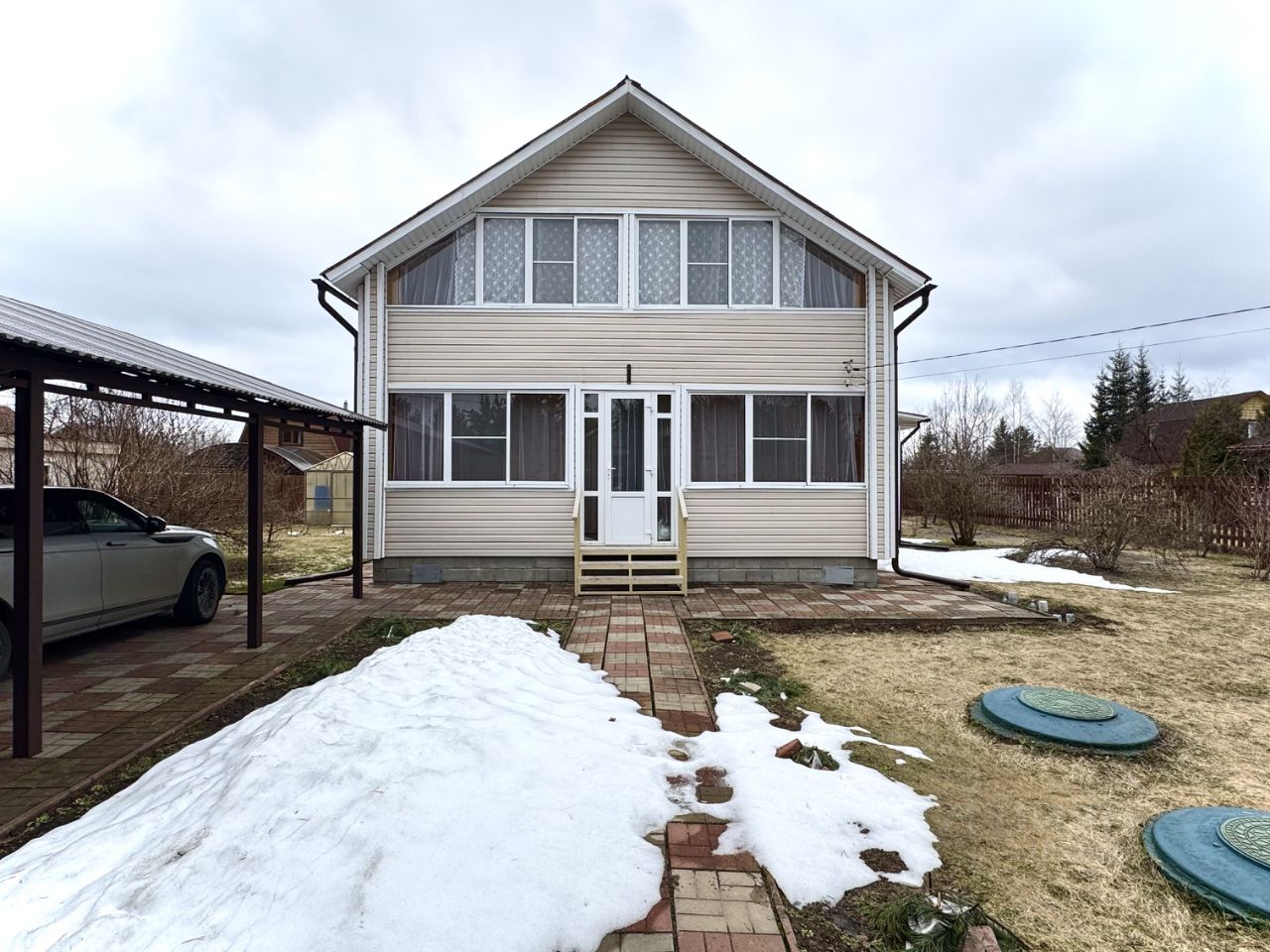 Дом находится на территории СНТ, въезд на территорию под шлагбаум, дорога асфальтирована, зимой чистят снег. В пешей доступности чистой проходимый лес, грибные и ягодные места!
