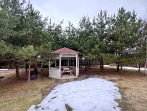 Дом расположен на участке 15 соток, правильной прямоугольной формы, ухожен. На участке беседка в окружении сосен, теплица, грядки, много цветов и плодоносящих кустарников, яблоня, груша. хозблок, площадка для стоянки двух машин под навесом.