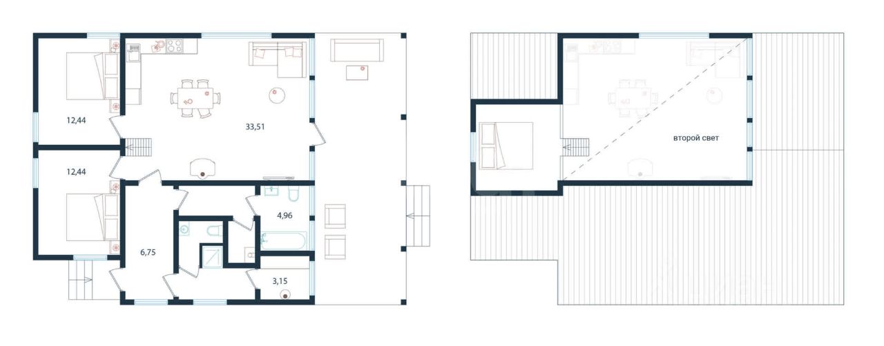 Этот барнхаус построен по современной технологии CLT (Cross Laminated Timber) из перекрестно-клееной древесины. Материал делает дом теплым, прочным и долговечным, создавая уютный микроклимат для комфортного проживания в любое время года. На дом действует гарантия от застройщика.